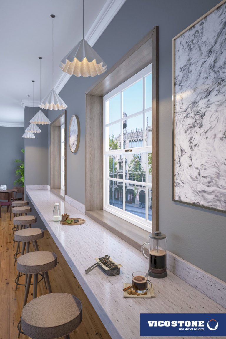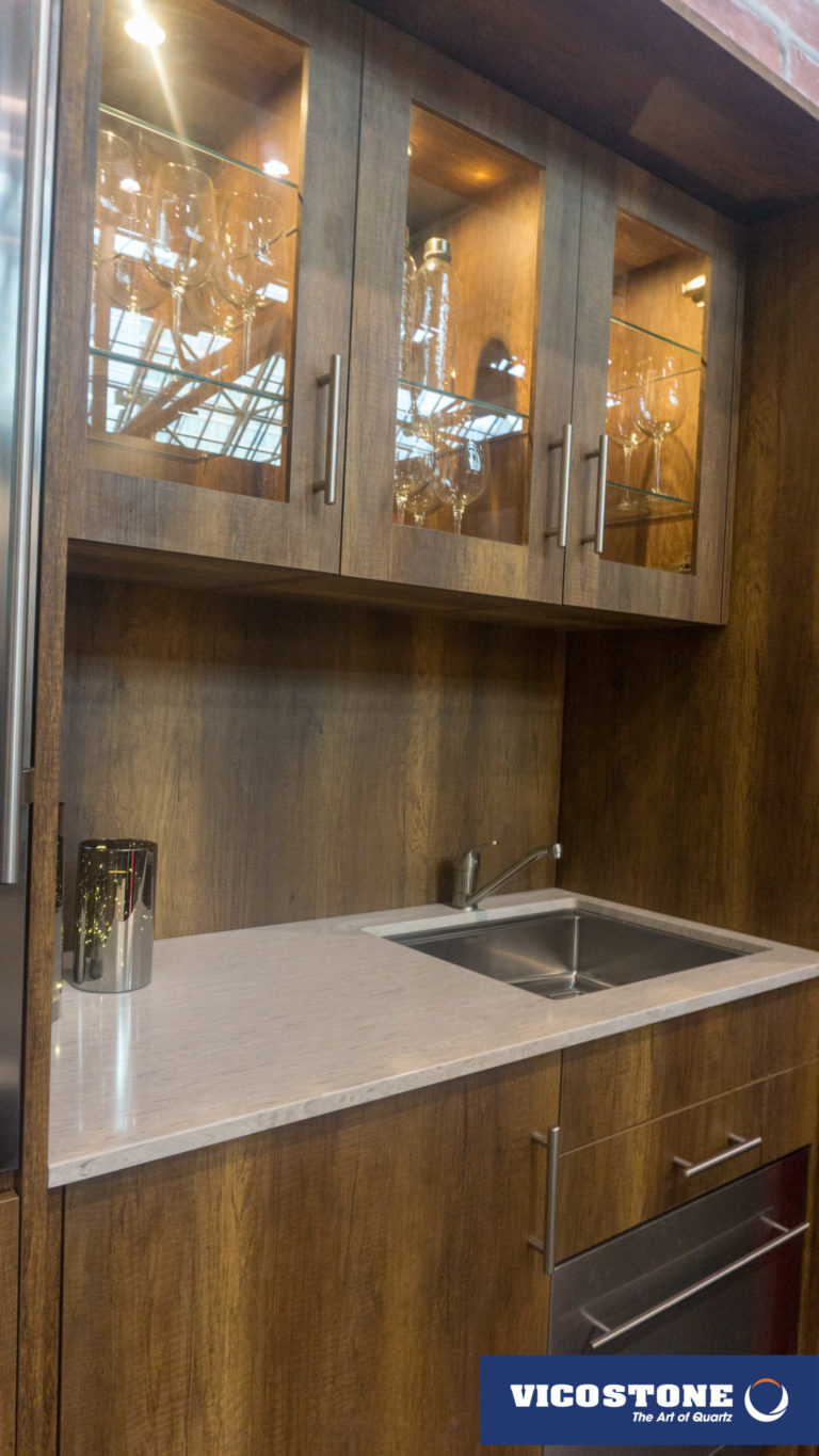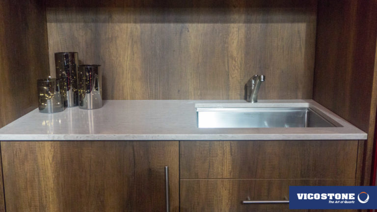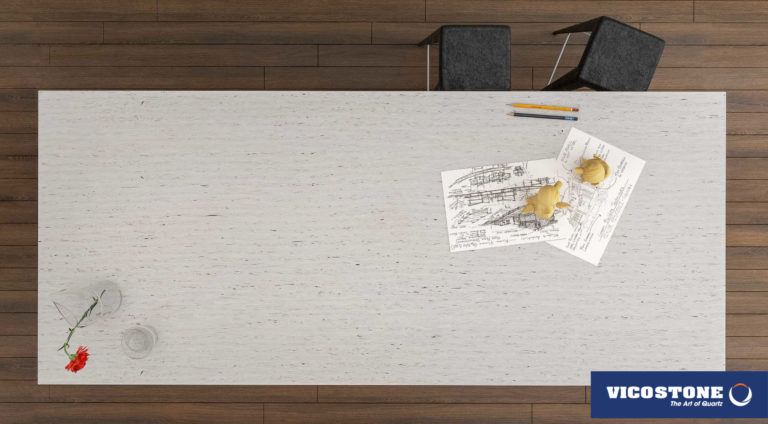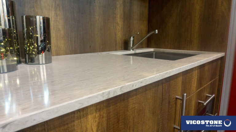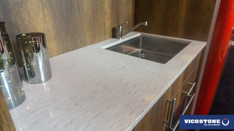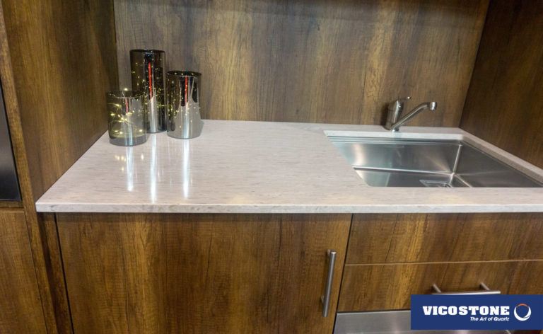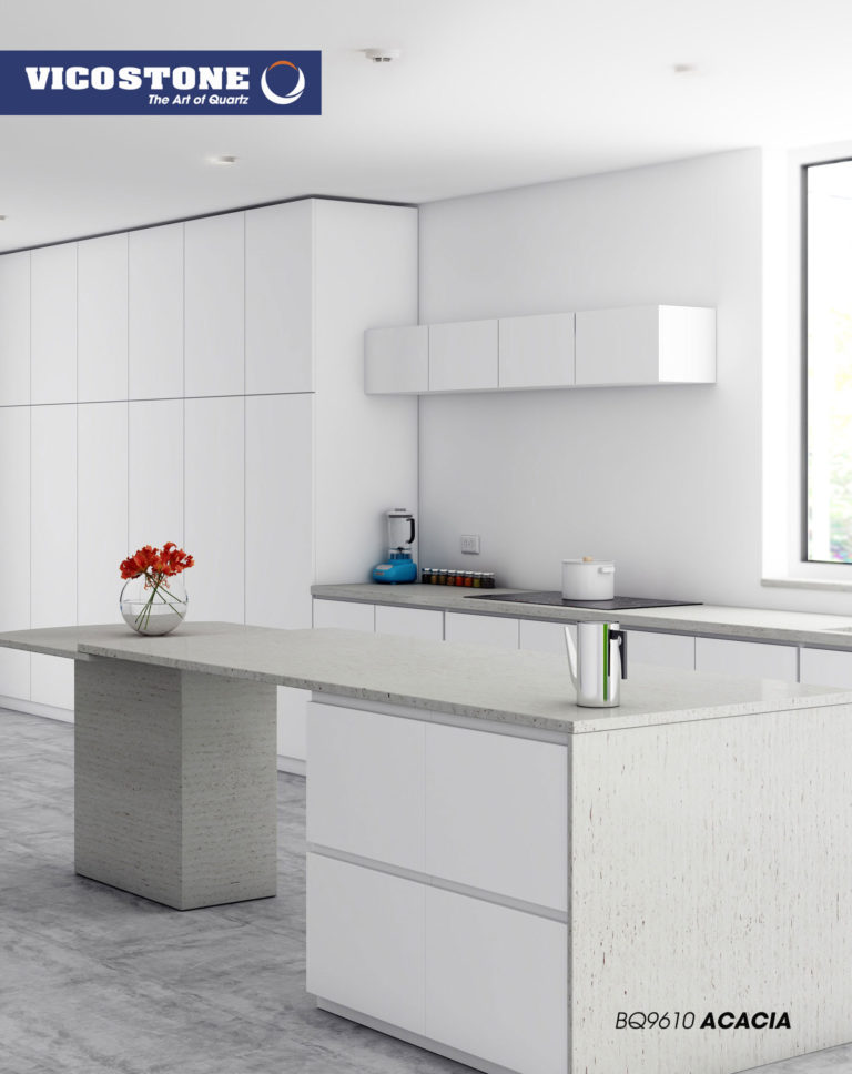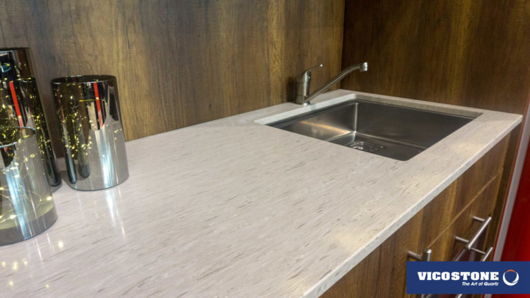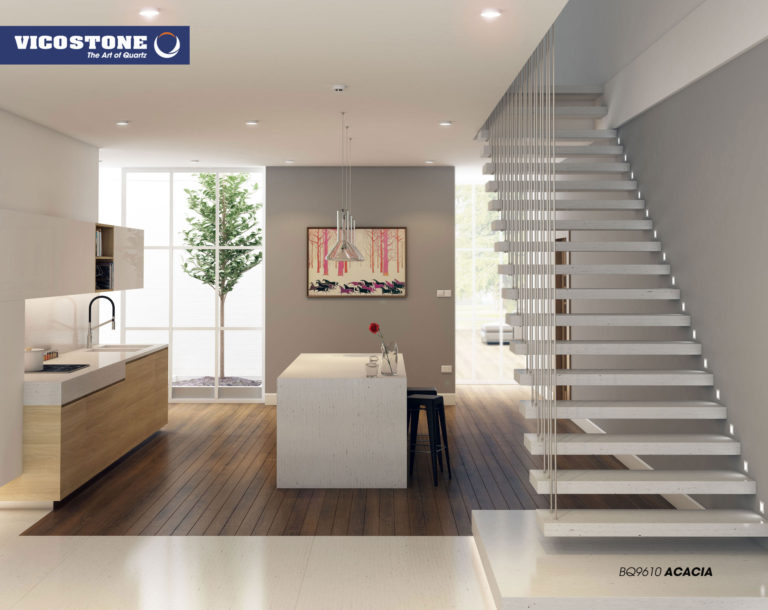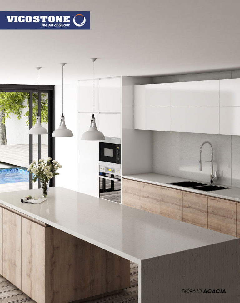 Acacia, il se démarque avec son style d'imitation bois. Sur son fond gris chaud on peut voir l'apparence des cernes et d’écorces d’arbres. Ces motifs inhabituels dans le quartz lui donnent un effet d’authenticité.
