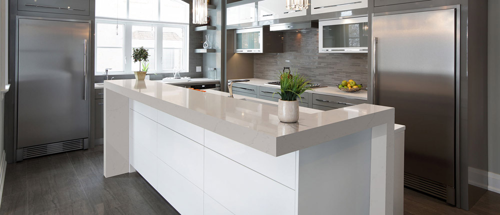Alabaster White, ce blanc au fond doux est particulièrement élégant avec ses longues veines grises d’une délicatesse incomparable.