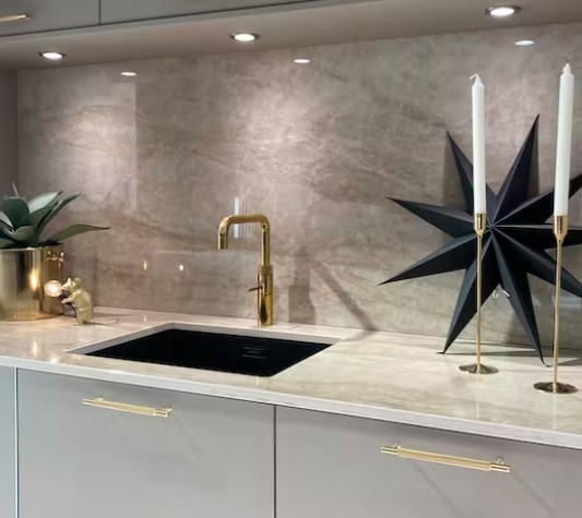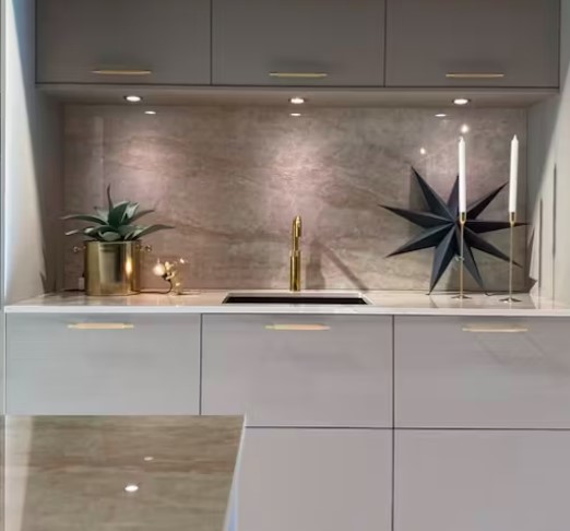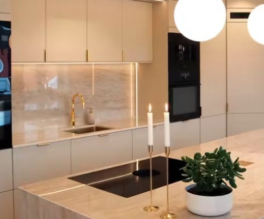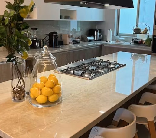Arga, avec sa finition polie, sur une base dans les teintes de beige doux et crémeux, il s’apparente au quartzite Taj Mahal. Ses fines veines subtiles intensifient sa profondeur nous laissant un mouvement sophistiqué.