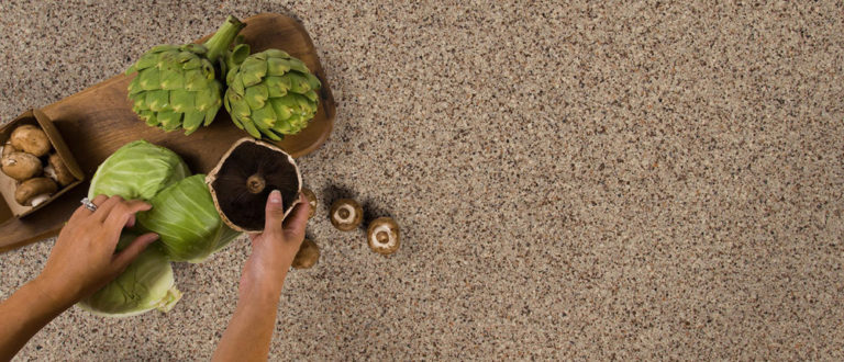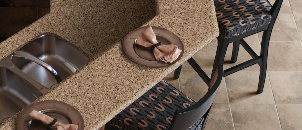 Bedrock, ce quartz de couleur taupe est accentué par des petites pierres translucides lui donnant un aspect convivial.