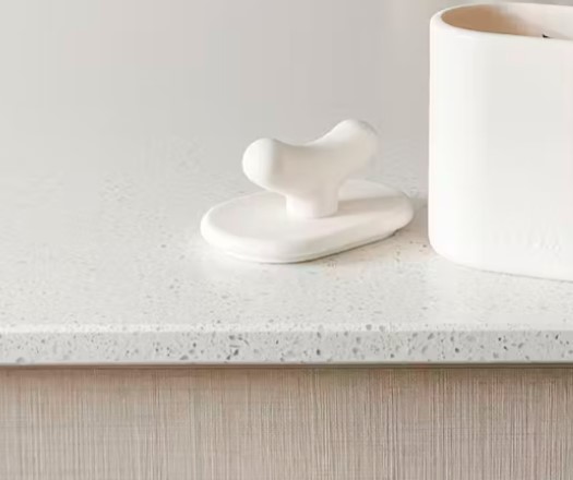 matériau en quartz se compose de tâches beiges, grises, taupe, blanches et