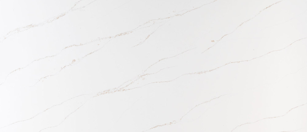 Calacatta Arno, avec son fond blanc chaud recouvert de veines grises amincies, ce quartz a un léger accent doré qui lui donne une allure prestigieuse.