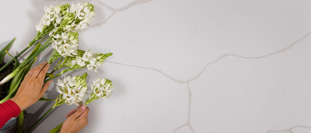 Calacatta Classique, son blanc pur est recouvert d’un veinage gris prodigieux. Son effet marbre est exquis et unique.