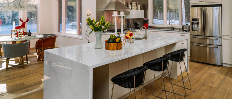 Calacatta Ida, avec son aspect fantaisiste , le Calacatta Ida possède une surface blanche pure composée d’un doux veinage gris à l’aspect nuageux.