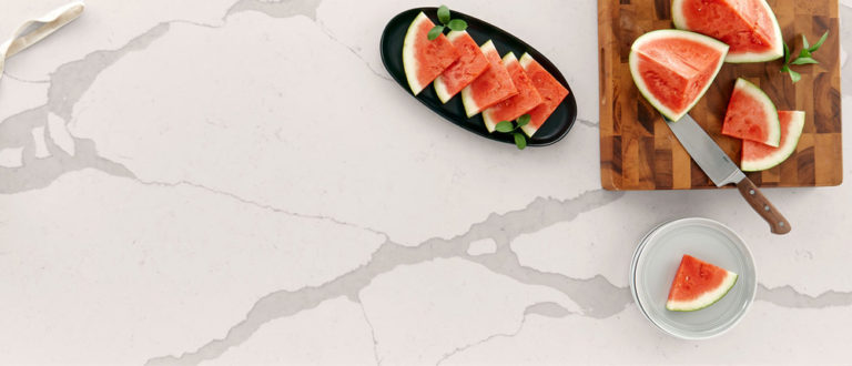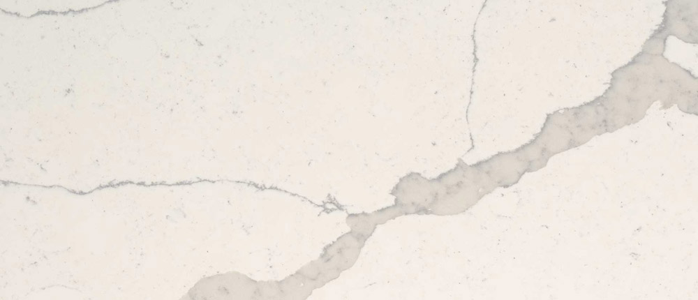 Calacatta Trento, ce quartz à la teinte de blanc polaire possède un mélange de fines et épaisses veines grises qui lui donnent un aspect visuel ultime et moderne.