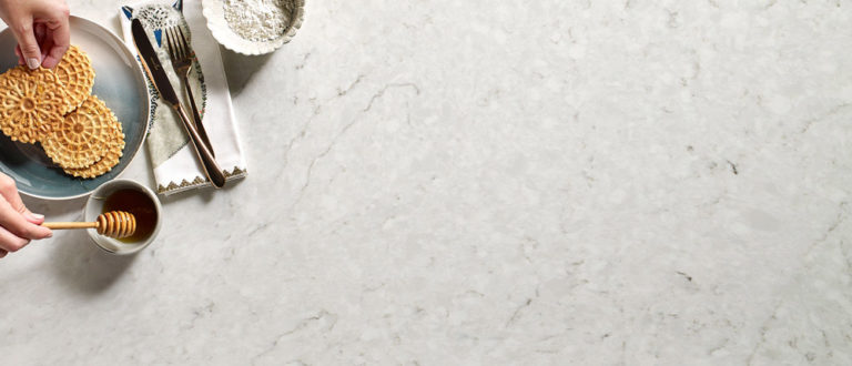 Carrara Caldia, avec sa surface blanche-grisâtre, le Carrara Caldia est merveilleusement polyvalent. Votre espace respirera l’élégance avec ce quartz.