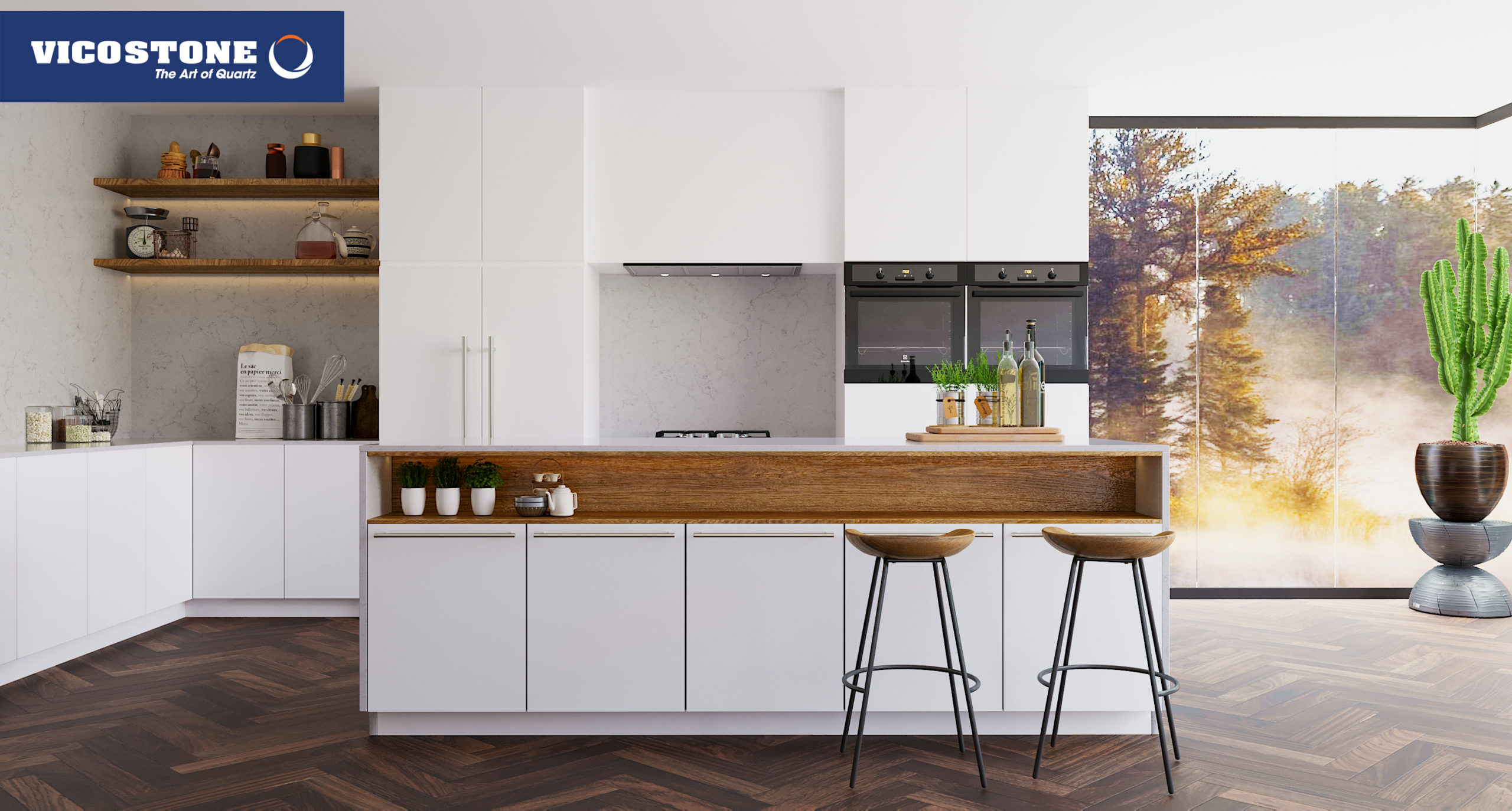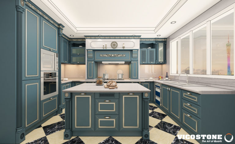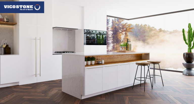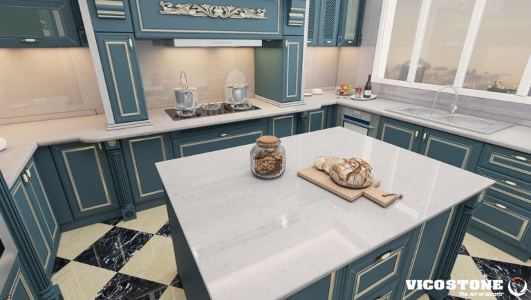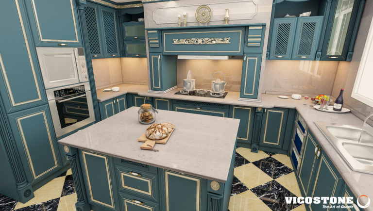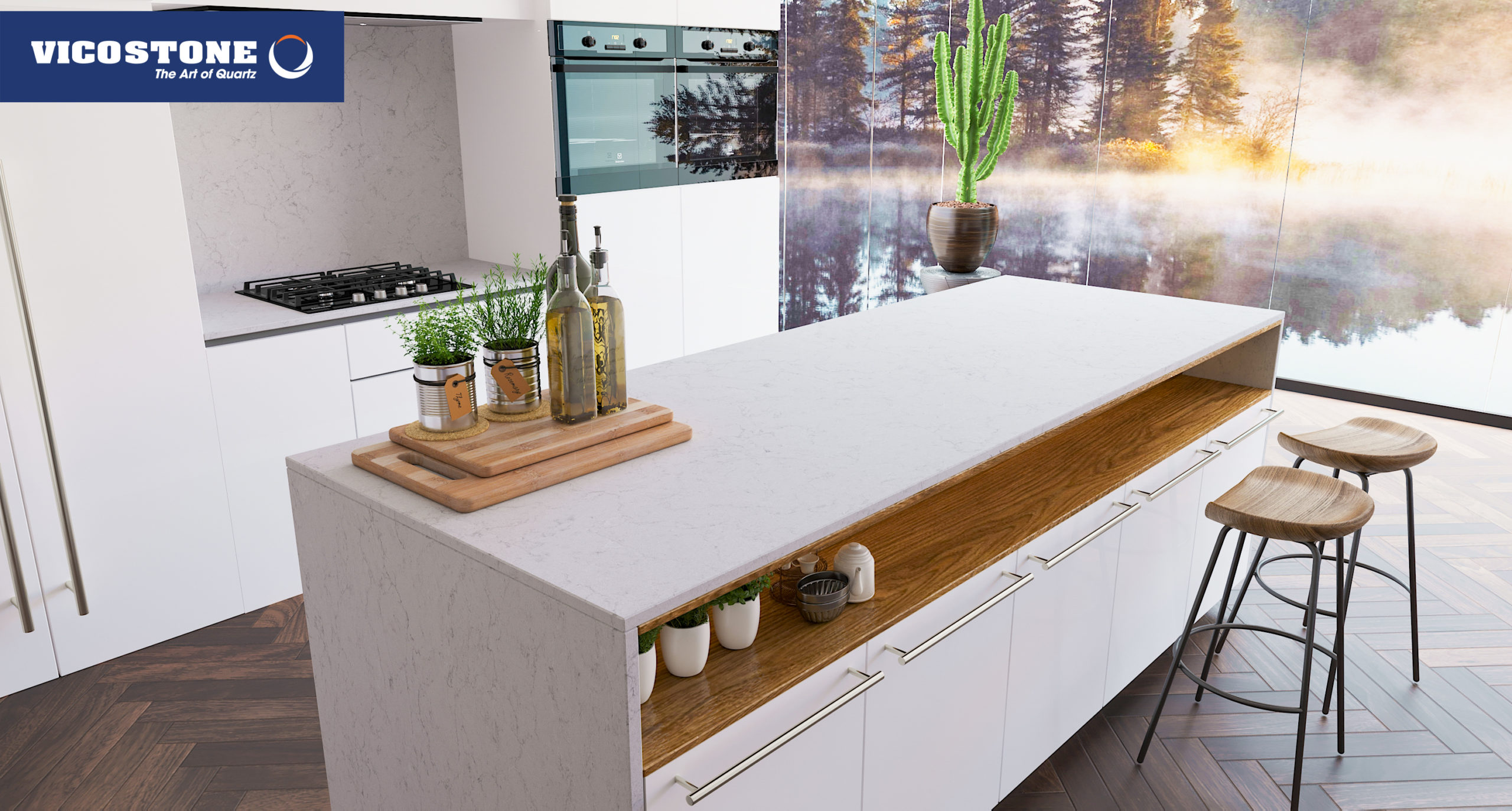 Inspiré du marbre naturel, Ceres Vicostone se caractérise par ses veines brunes entrelacées sur une surface grise délicate.