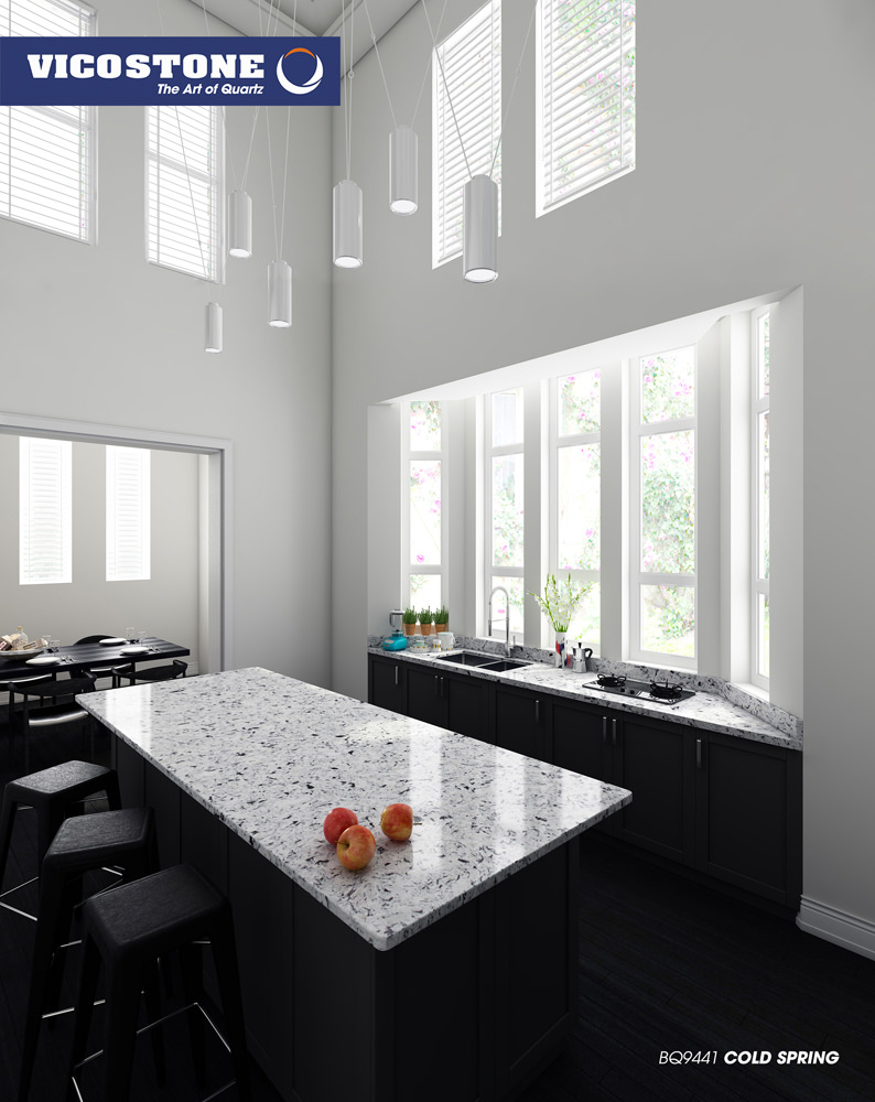 Cold Spring, dans sa palette de couleur blanche et ses motifs gris et noir, son design est inspiré du granit. Il incarne l’élégance et la souplesse.