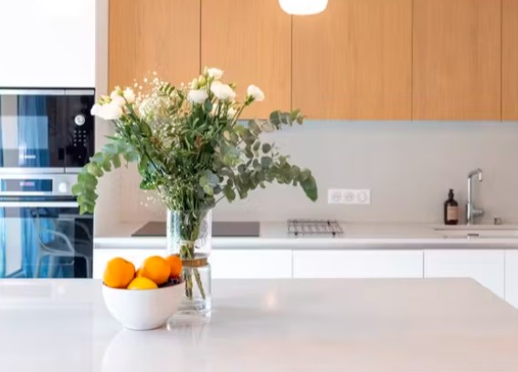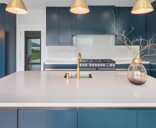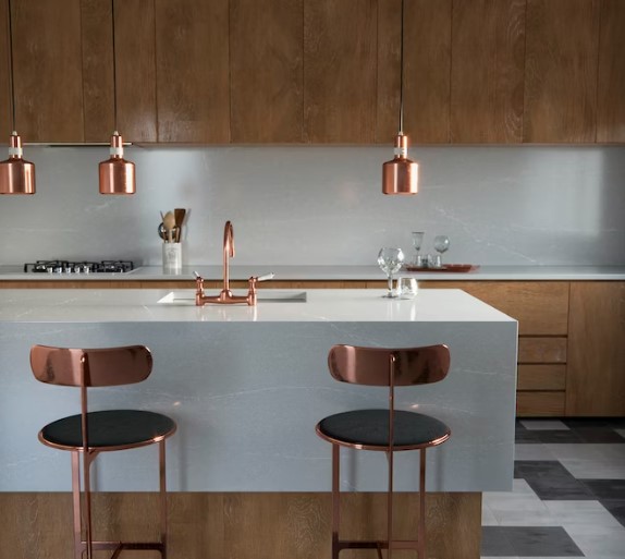 Le comptoir en quartz Desert Silver de Silestone est une superbe pierre grisâtre pâle