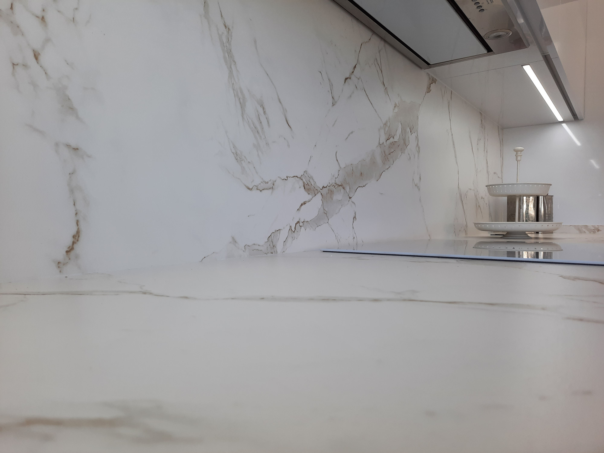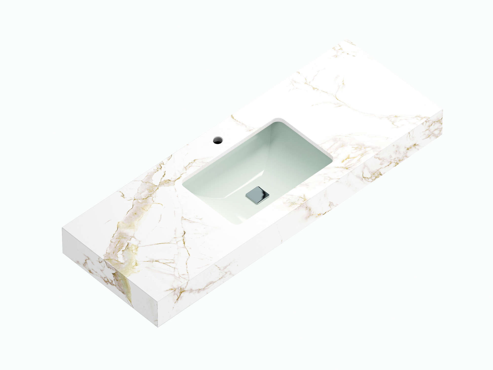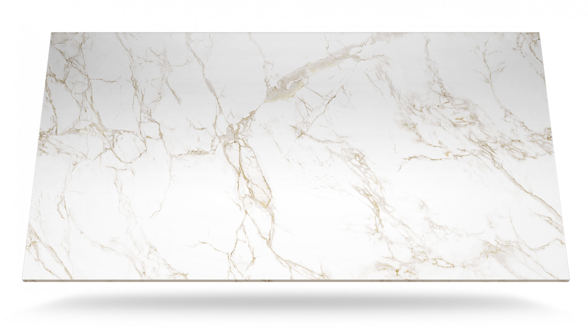 Entzo, avec sa finition mate inspirée du marbre calacatta, cette couleur démontre le réalisme et le naturel avec ses veines dorées d’une élégance incontestable.