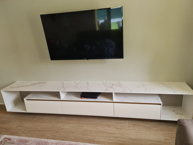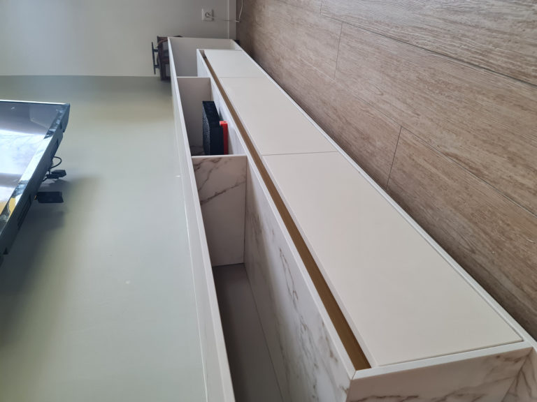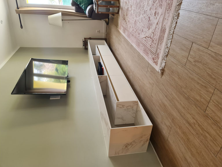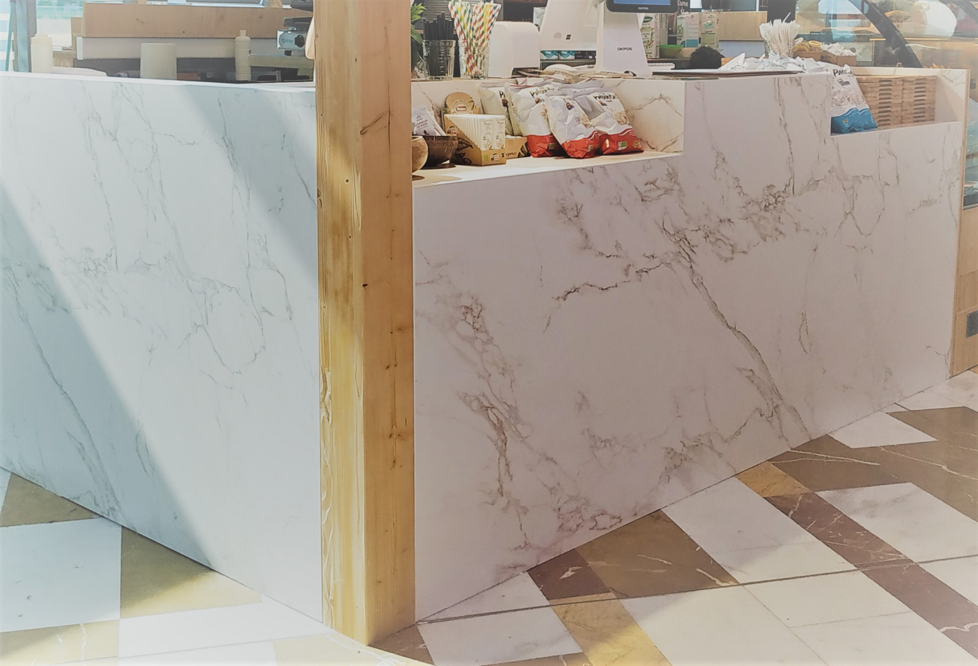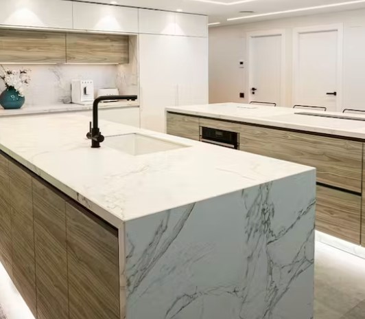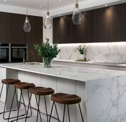 Entzo, avec sa finition mate inspirée du marbre calacatta, cette couleur démontre le réalisme et le naturel avec ses veines dorées d’une élégance incontestable.