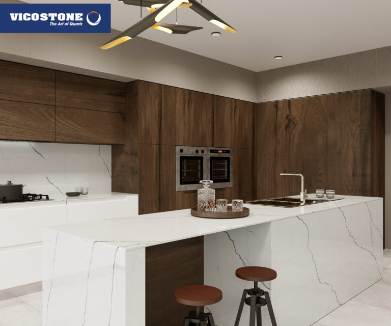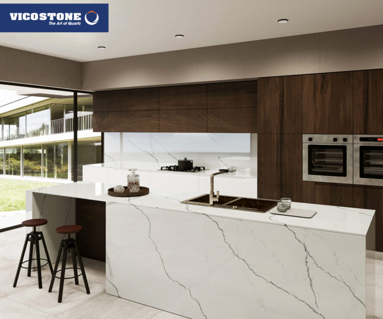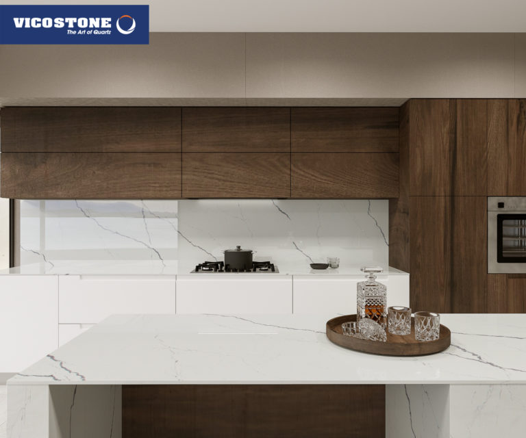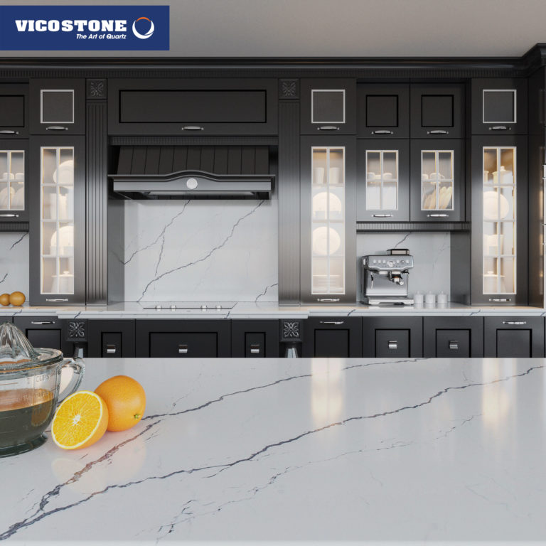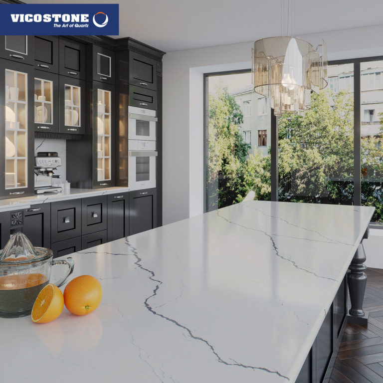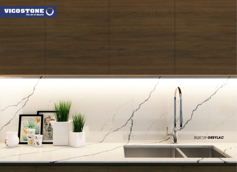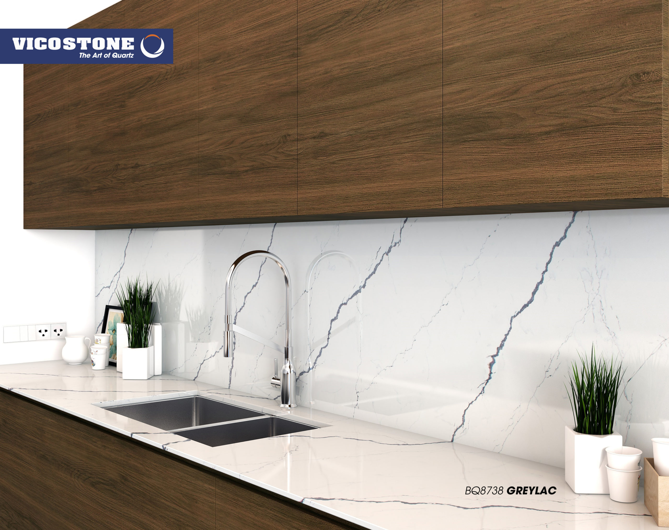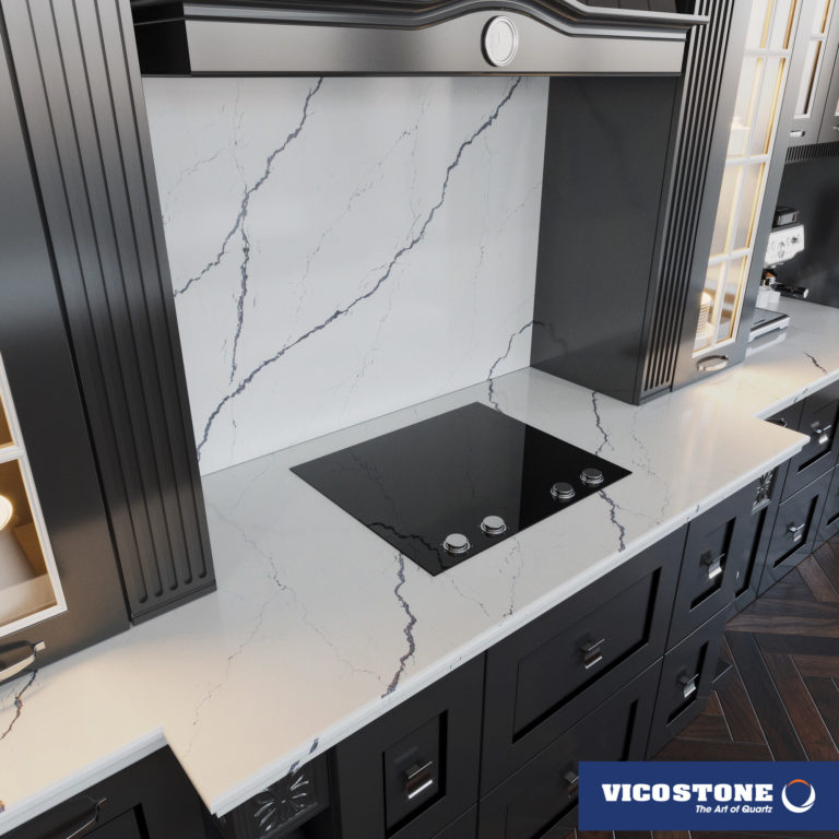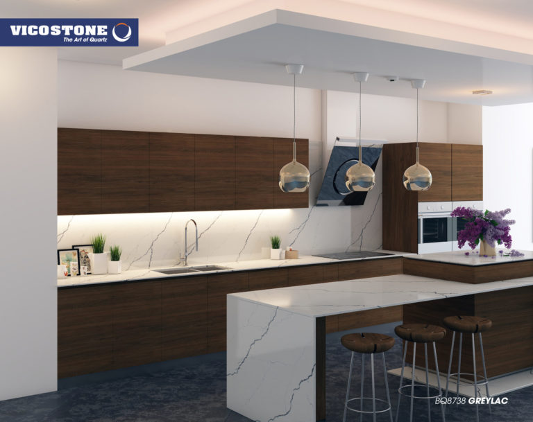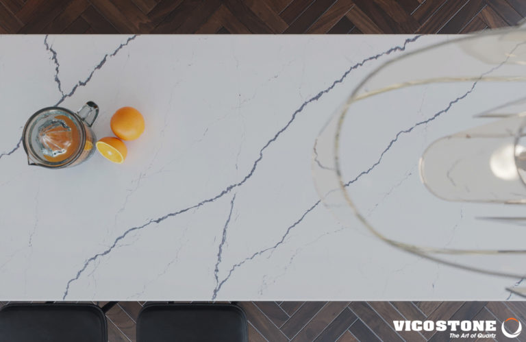 La surface Vicostone Greylac est remarquable avec des veinures fêlées telles des