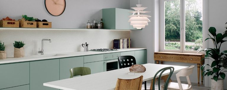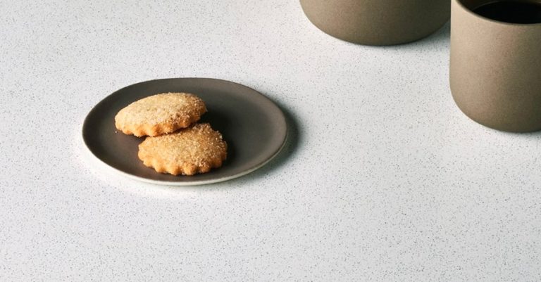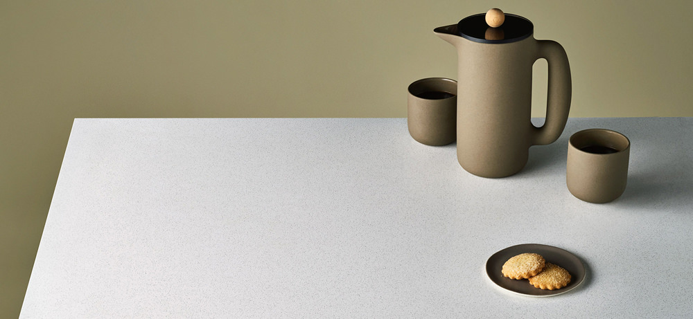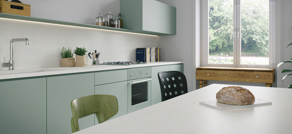 Intense White, son fond blanc éclatant est parsemé de petits motifs étincelants. Son aspect lumineux fera briller votre cuisine.
