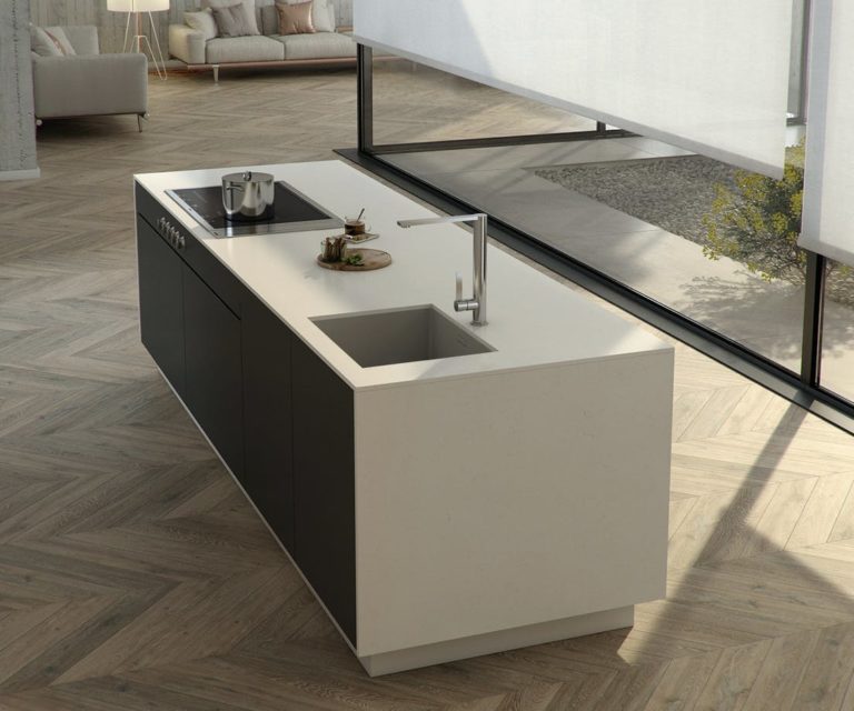 Miami Vena, un choix populaire qui le distingue par son ton clair avec un design neutre mais aussi agrémenté de légères et discrètes veines grisâtres. Cette couleur est un passe-partout qui se fond dans tous les styles de cuisines.