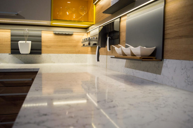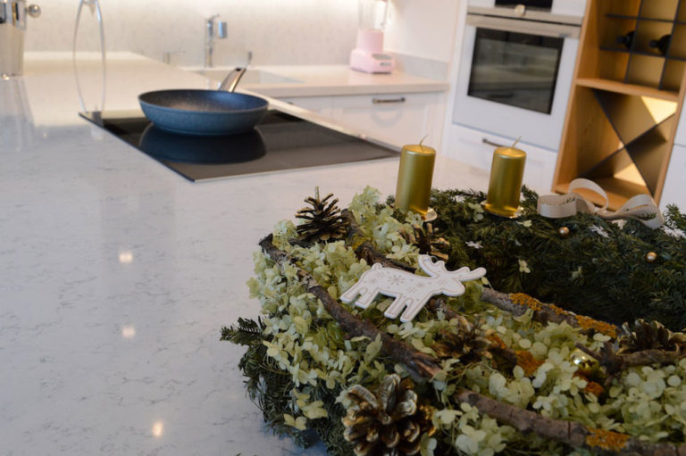 Noble Carrara, cette couleur au fond blanc-grisâtre nous offre un mélange de veines grises aux teintes bleutées d’une splendeur unique. Elle se situe entre un effet marbre et un style moucheté.