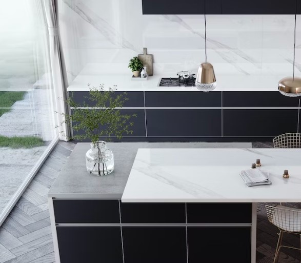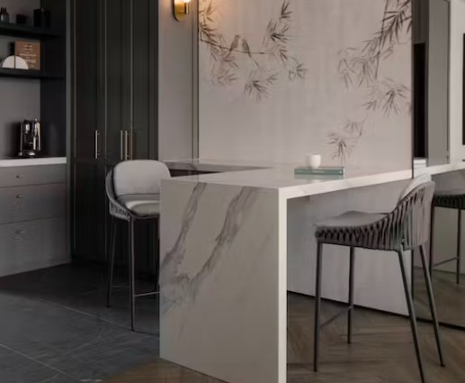 Olimpo, avec sa finition polie et ses caractéristiques des couleurs de style marbre, cette teinte blanche brillante est traversée par de soyeuses veines grises.
