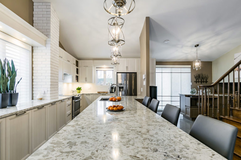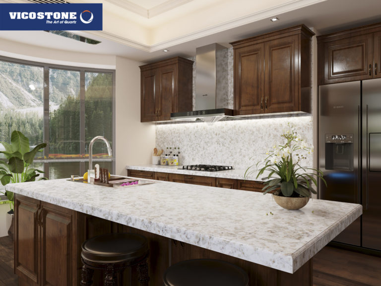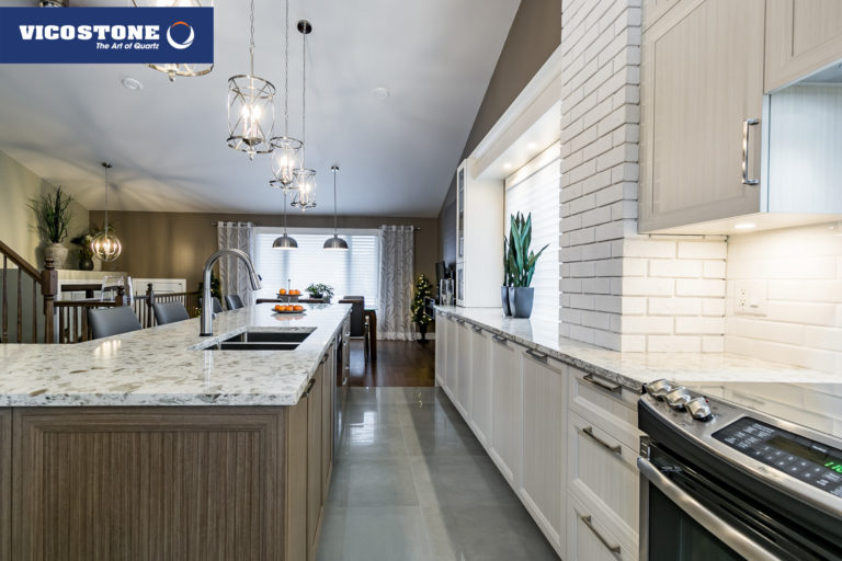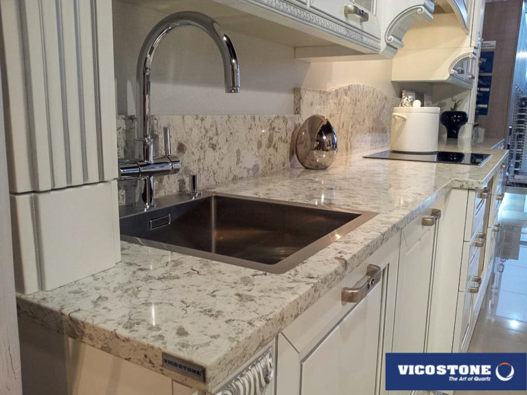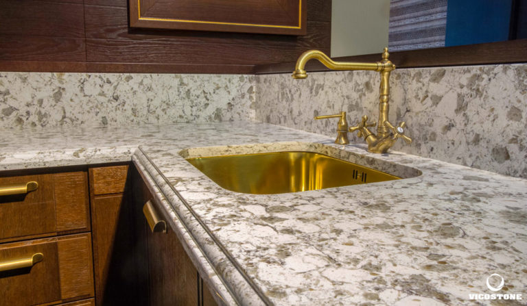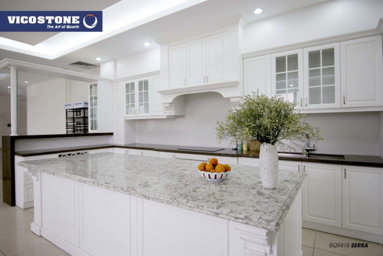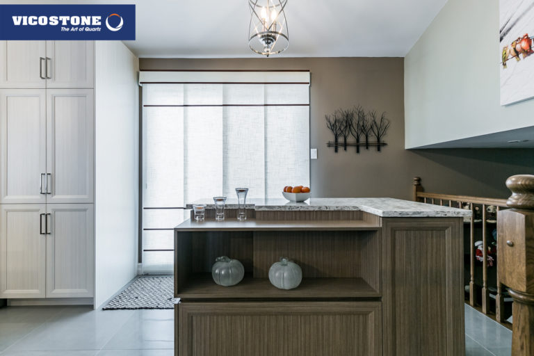 Serra, représentant la vision du granit, cette couleur aux multiples teintes de gris équivoque un aspect naturel du quartz dans toute sa beauté.