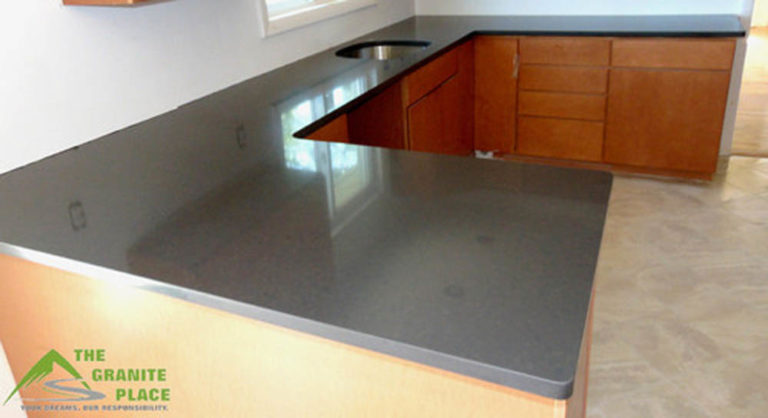 Shadow Gray, cette couleur à la teinte graphite est mouchetée de motifs gris plus sombres. Ce quartz est à la fois une couleur chic et classique.