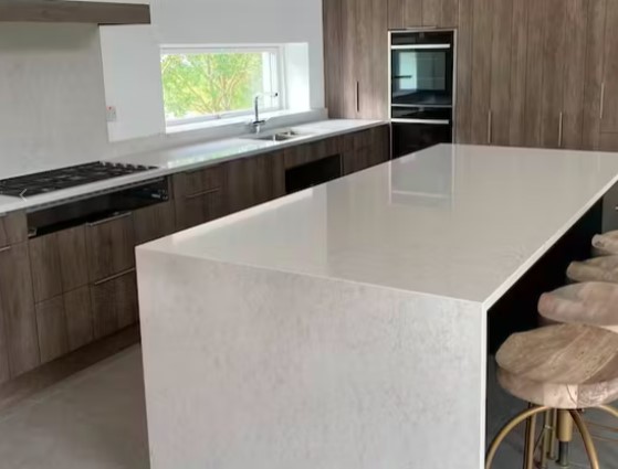 Silestone Snowy Ibiza est une pierre de quartz blanc avec des tons blanc cassé et de