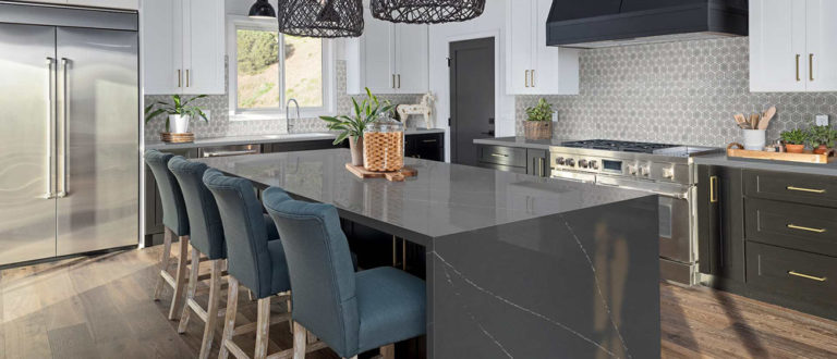 Soapstone Metropolis, de longues et délicates veines blanches ajoutent des détails subtils à ce magnifique gris ardoise.