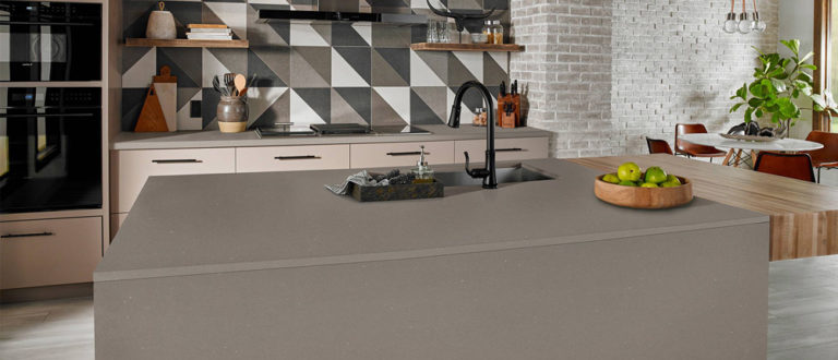Stellar Gray, à l’aspect terrazzo, cette couleur possède un fond gris moyen avec des motifs et des éclats tels des bris de verres brillants.