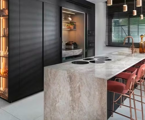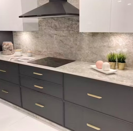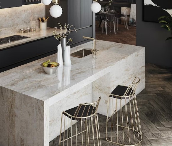 Taga, avec sa finition polie, il interprète parfaitement les allures du quartzite. Ses teintes mélangées de gris et de beige correspondent pleinement aux tendances actuelles et au style contemporain.