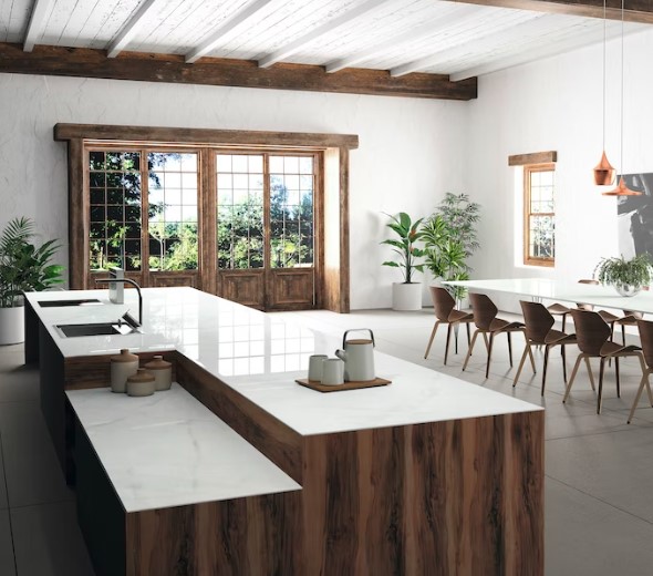 Tundra, avec sa finition polie et son fond blanc, il imite l’effet marbre avec son veinage gris clair qui représente l’image de la douceur. Cette couleur apaisante embellira votre espace.