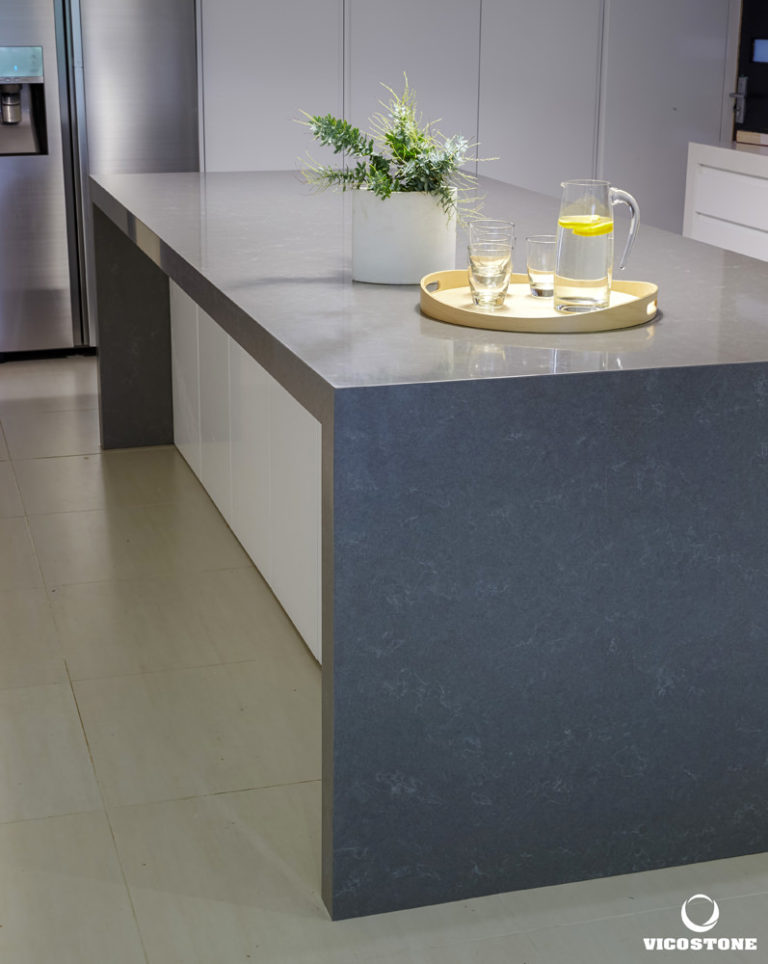 Uliano, avec ses veines blanches émincées qui disparaissent dans son fond gris ardoise, Uliano se définit comme un effet marbre. Son contraste et son style moderne sont très intéressants.