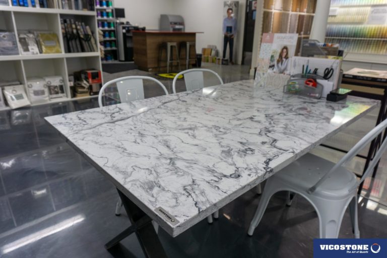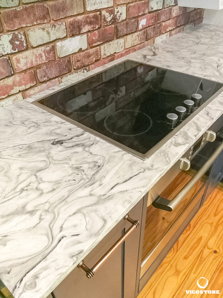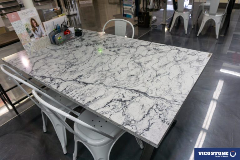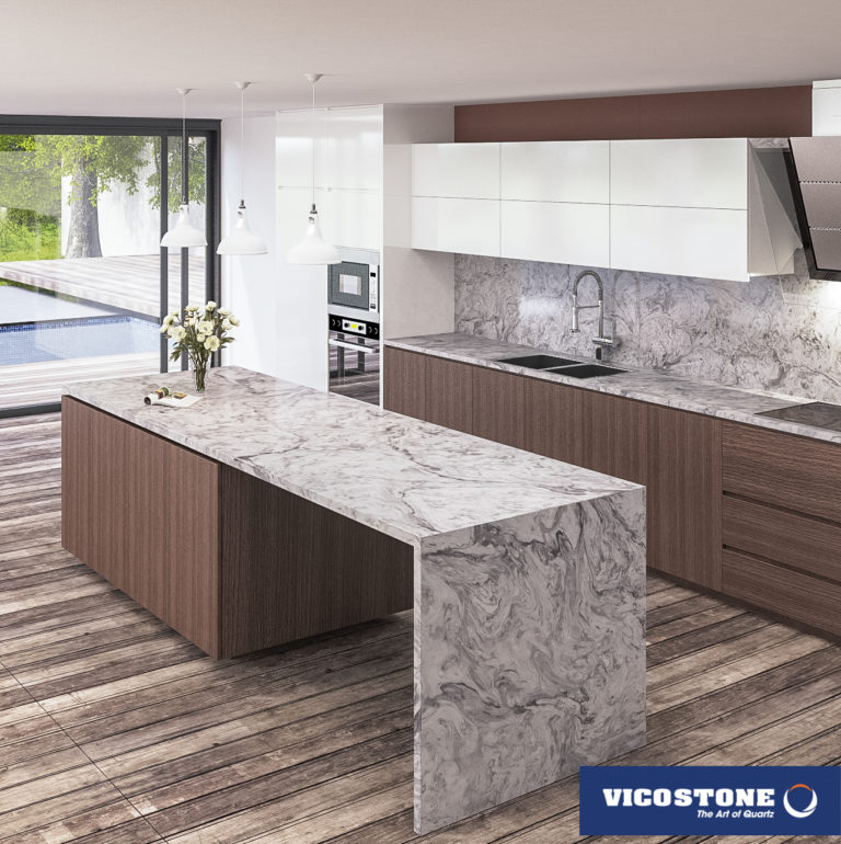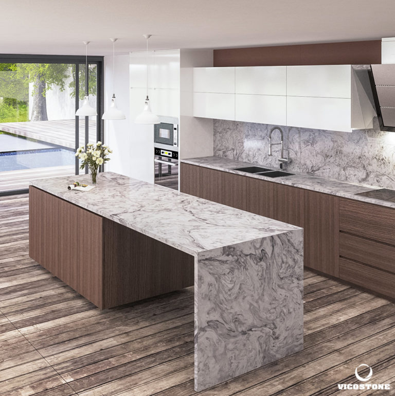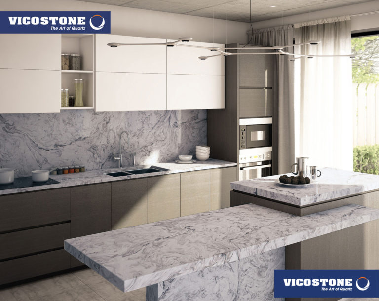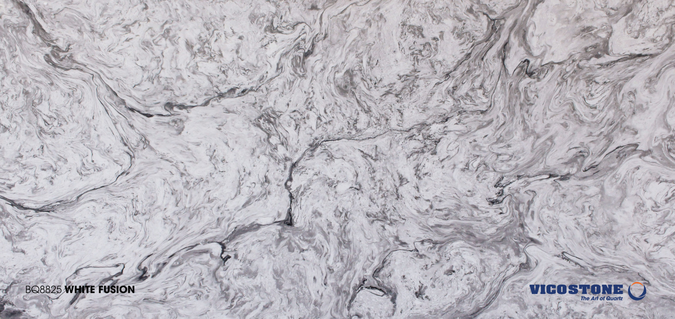 White Fusion, avec son aspect unique très distinctif, il créer un mouvement de tourbillon tenant ses veines grises entremêlées sur son fond blanc. La transition douce et naturelle entre ses couleurs est remarquable.