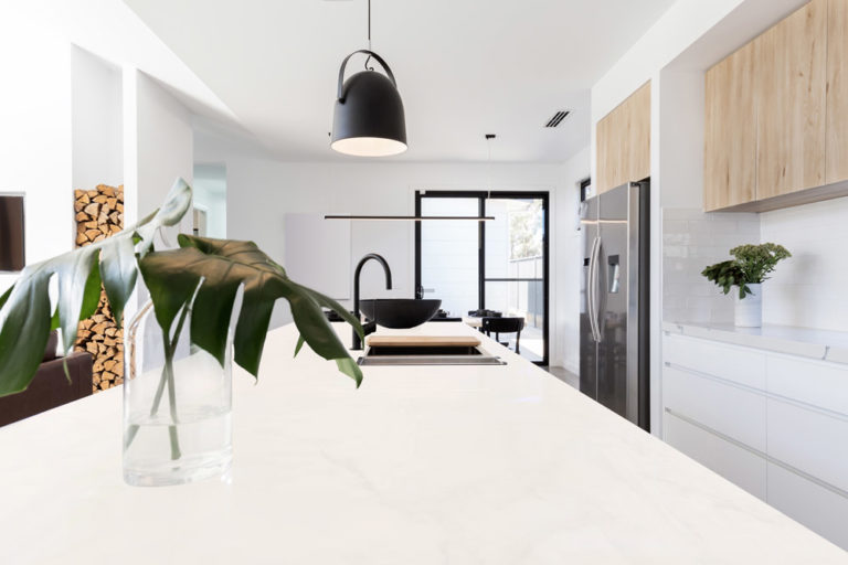White Pearl, ce blanc aux minimes grains gris est une couleur passe-partout. La légèreté de ses motifs s'accorde parfaitement avec tous les styles.